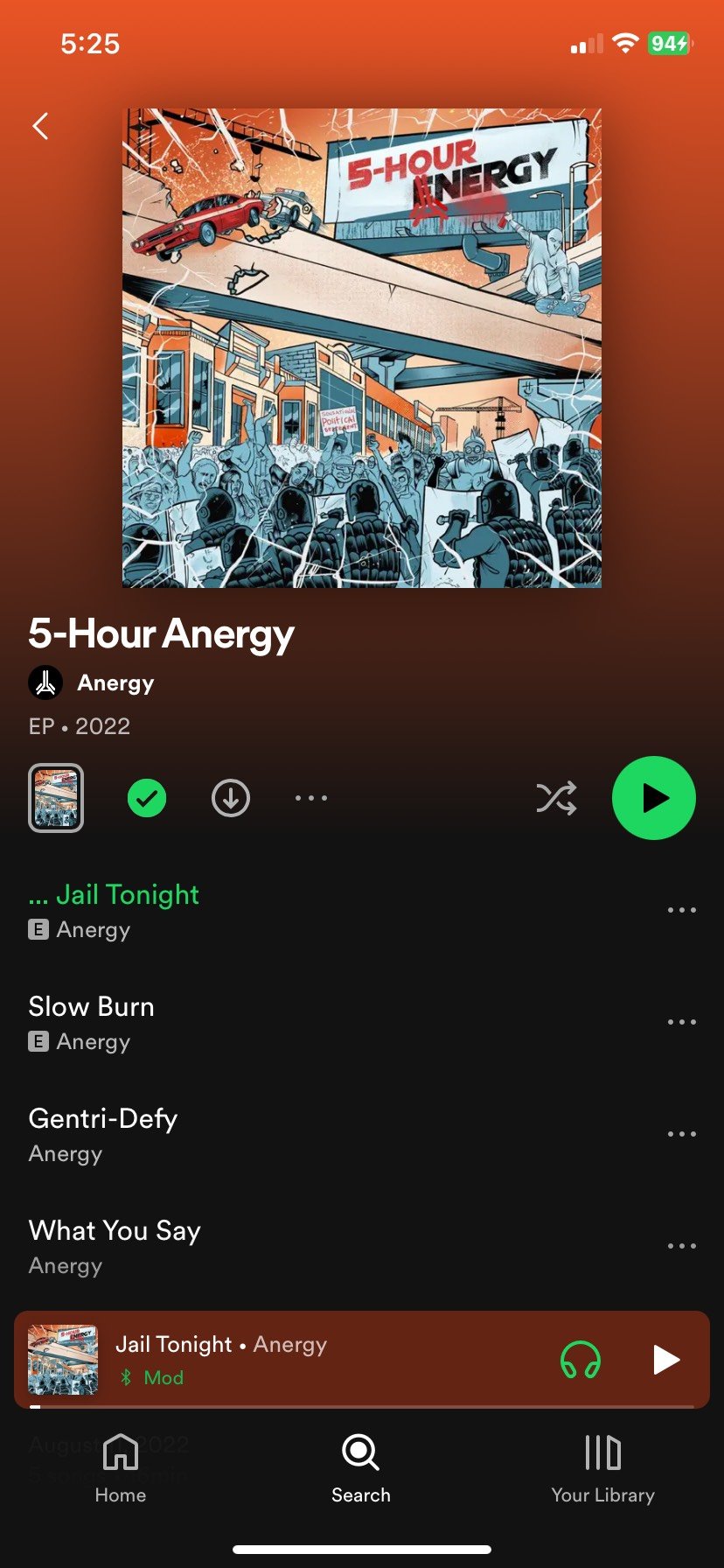 This is the cover artwork I illustrated for the 2022 EP “5-Hour Anergy” for the Charleston, SC area band Anergy. Done in Procreate. Below you will see the final artwork, a timelapse of the illustration process, and some screenshots of the artwork as they appear on streaming platforms.