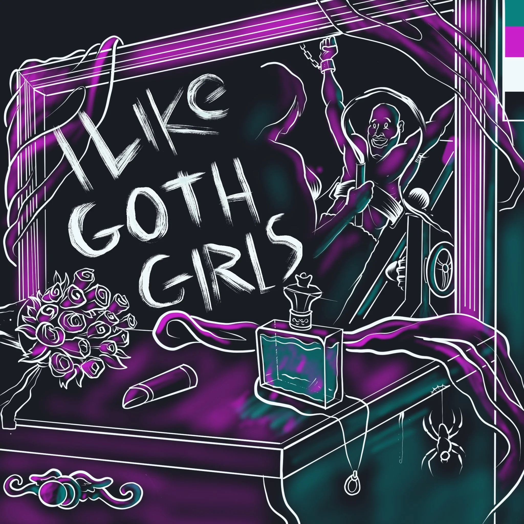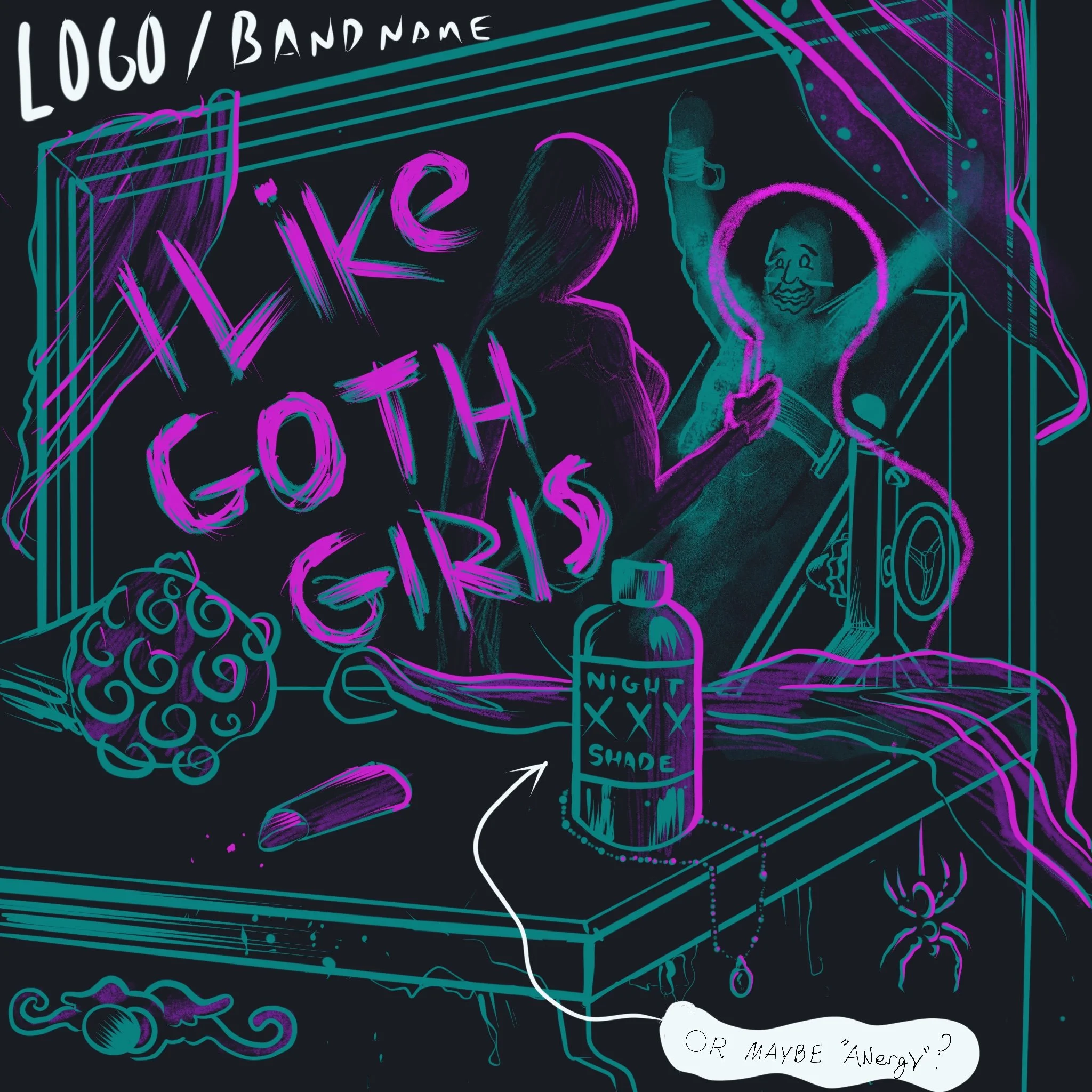 This is the cover artwork I illustrated for the 2023 EP “I like goth girls” for the Charleston, SC area band Anergy. Done in Procreate. Below you will see the final artwork, a timelapse of some early sketching,pics of the different iterations along the way and some screenshots of the artwork as they appear on streaming platforms.