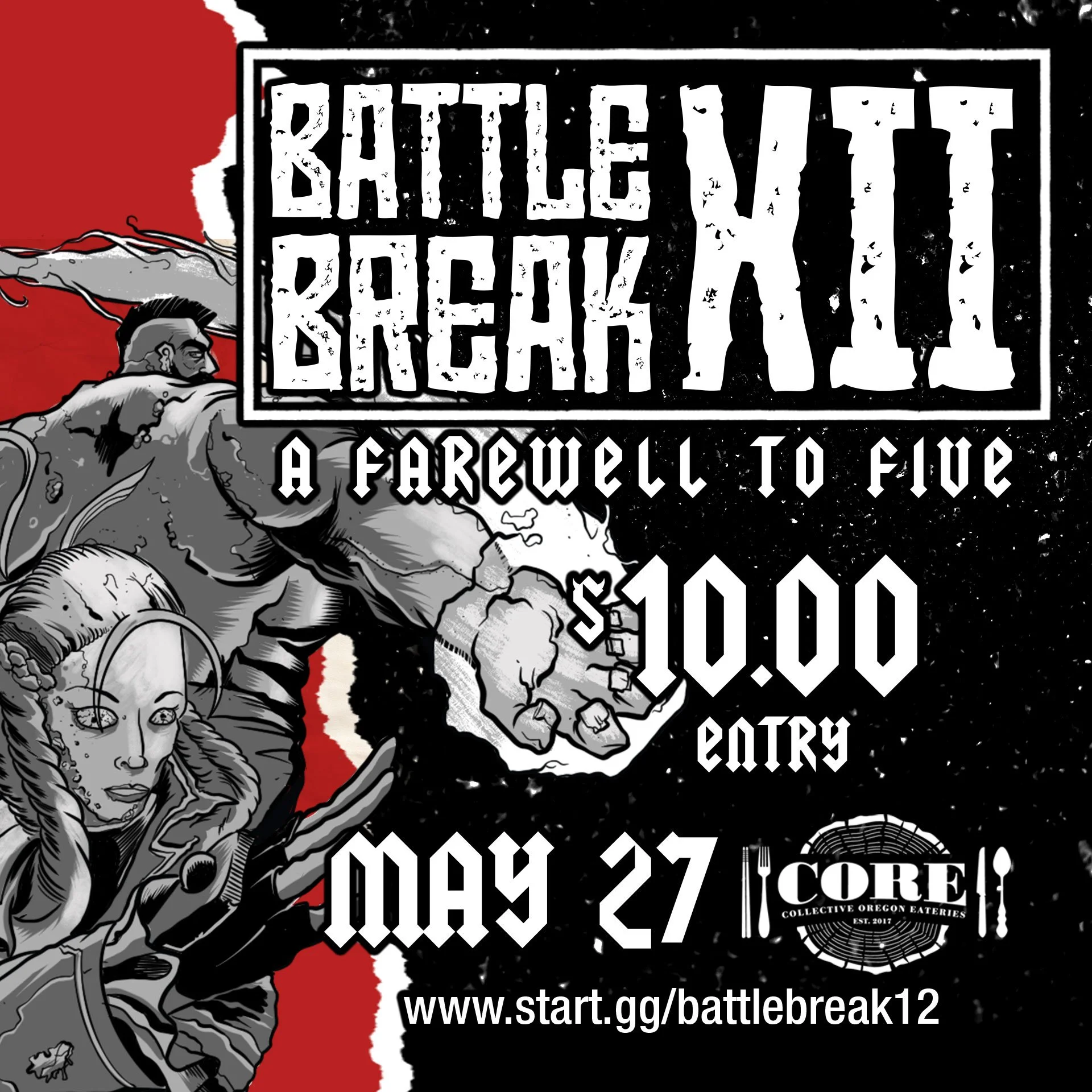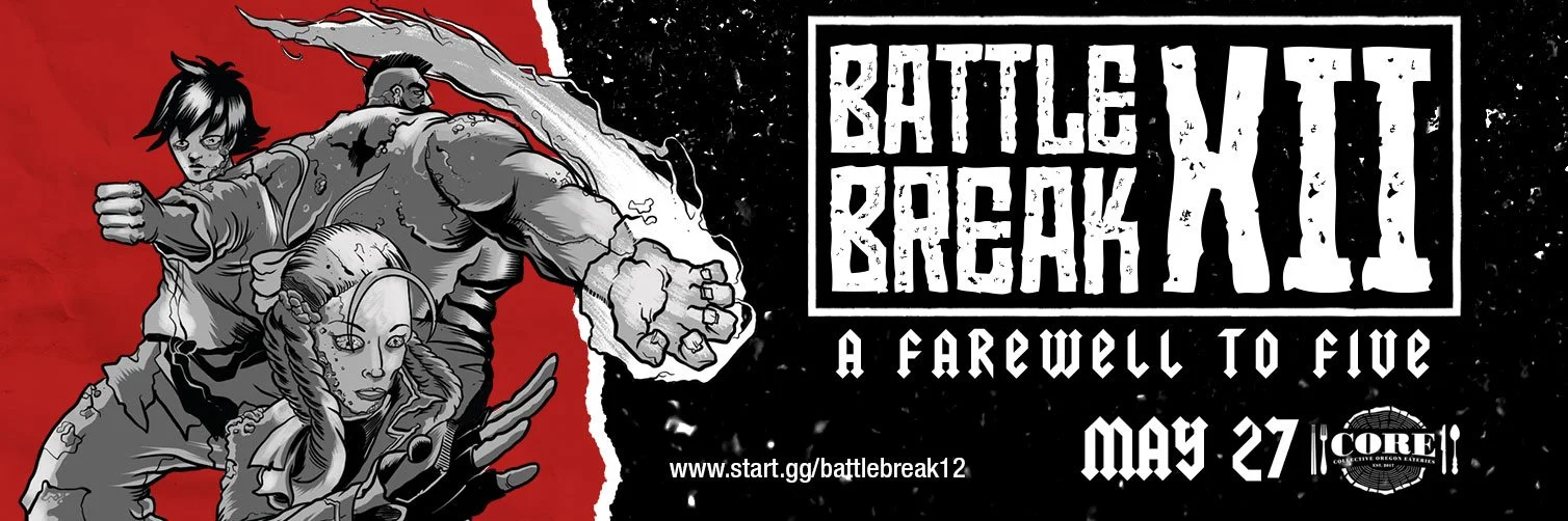 These are some web banners I designed to promote the “Battle Break XII” fighting game tournament. I illustrated the grey characters to the left and I provided the text treatment and overall layout design. Below you will see the sizer variations for the different dimensions needed.